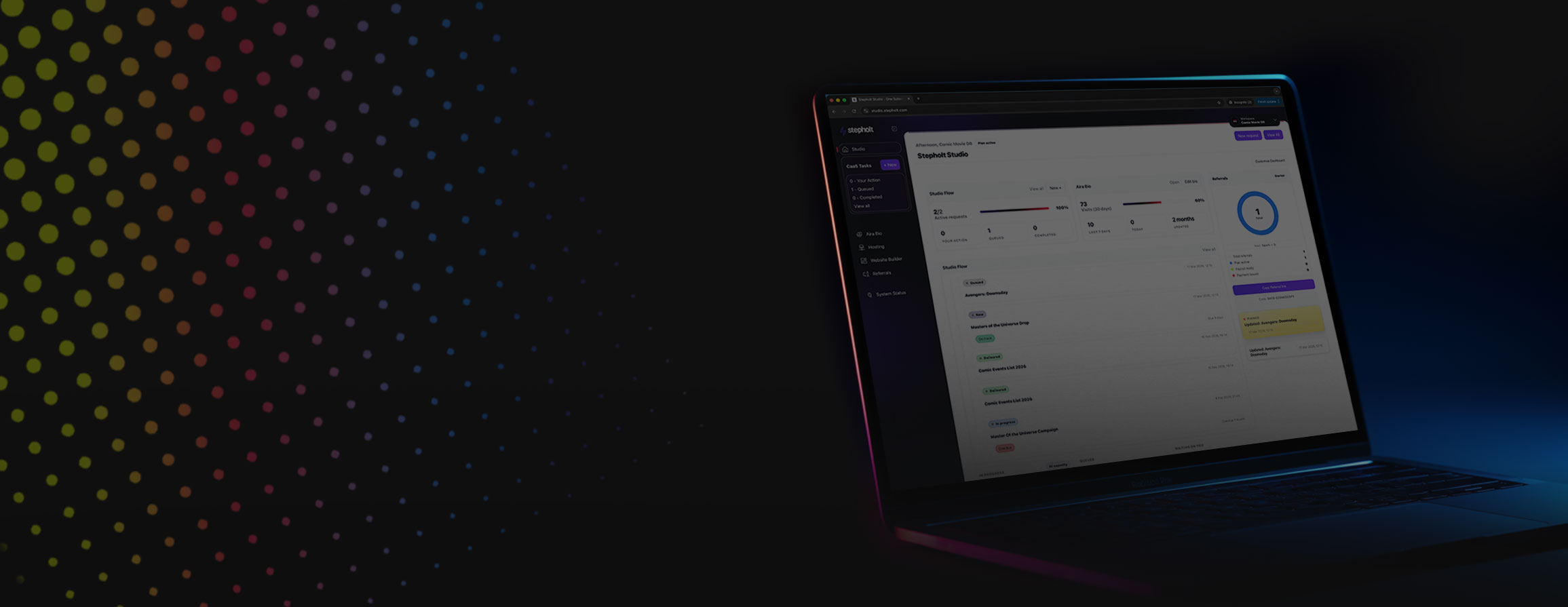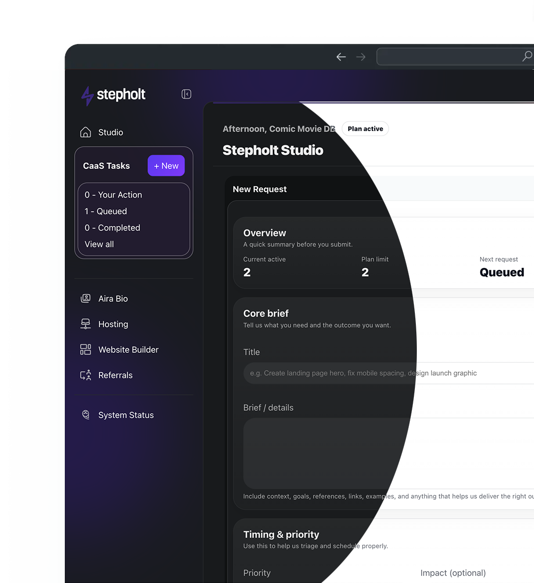 Studio by Stepholt is a Creative-as-a-Service subscription that provides unlimited design, development and marketing support for a fixed monthly fee. It replaces the need to hire freelancers or agencies by giving you access to a full team in one place.
