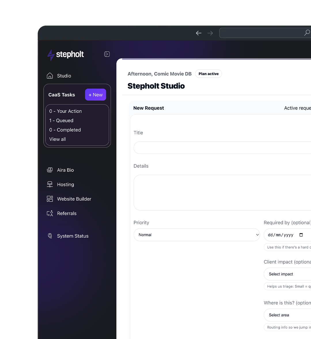 All requests are submitted through your Studio dashboard. This allows you to track progress, manage priorities and communicate directly with the team in one place.